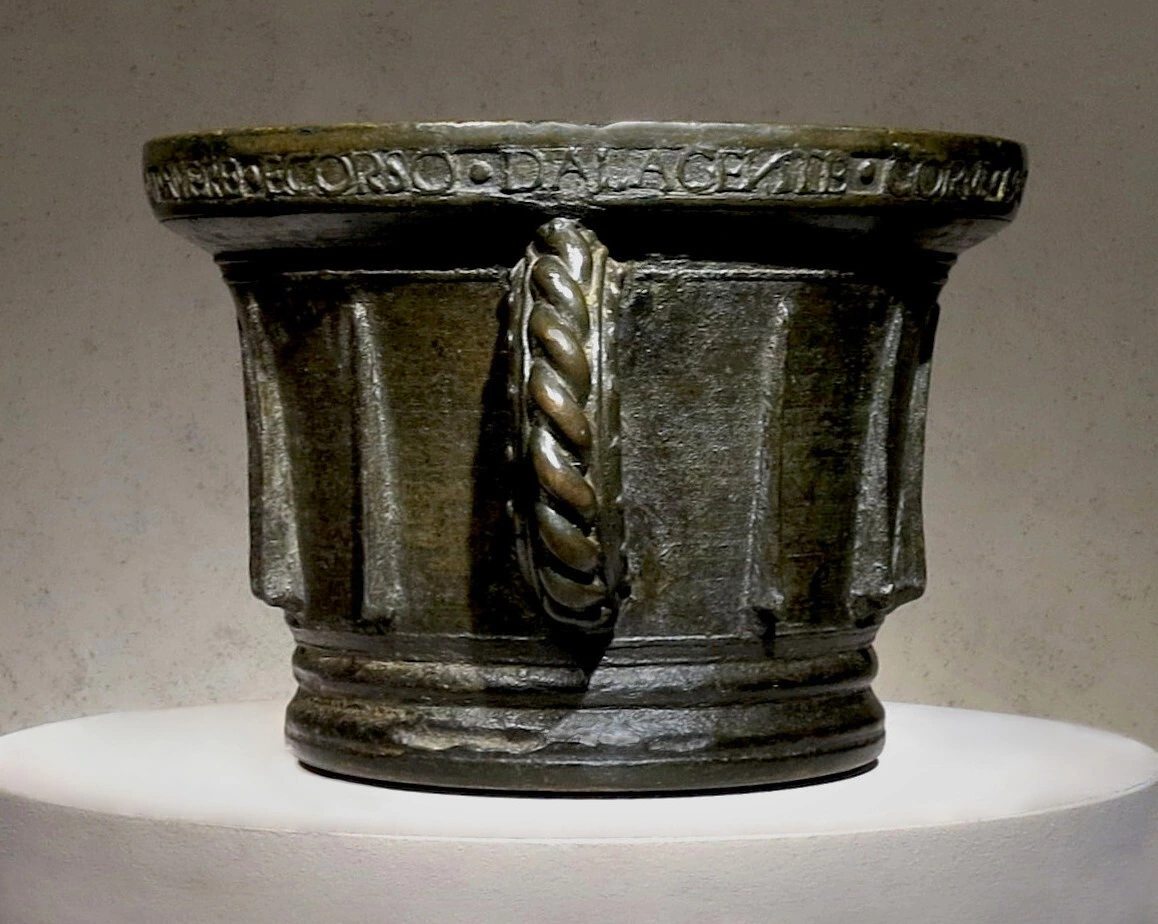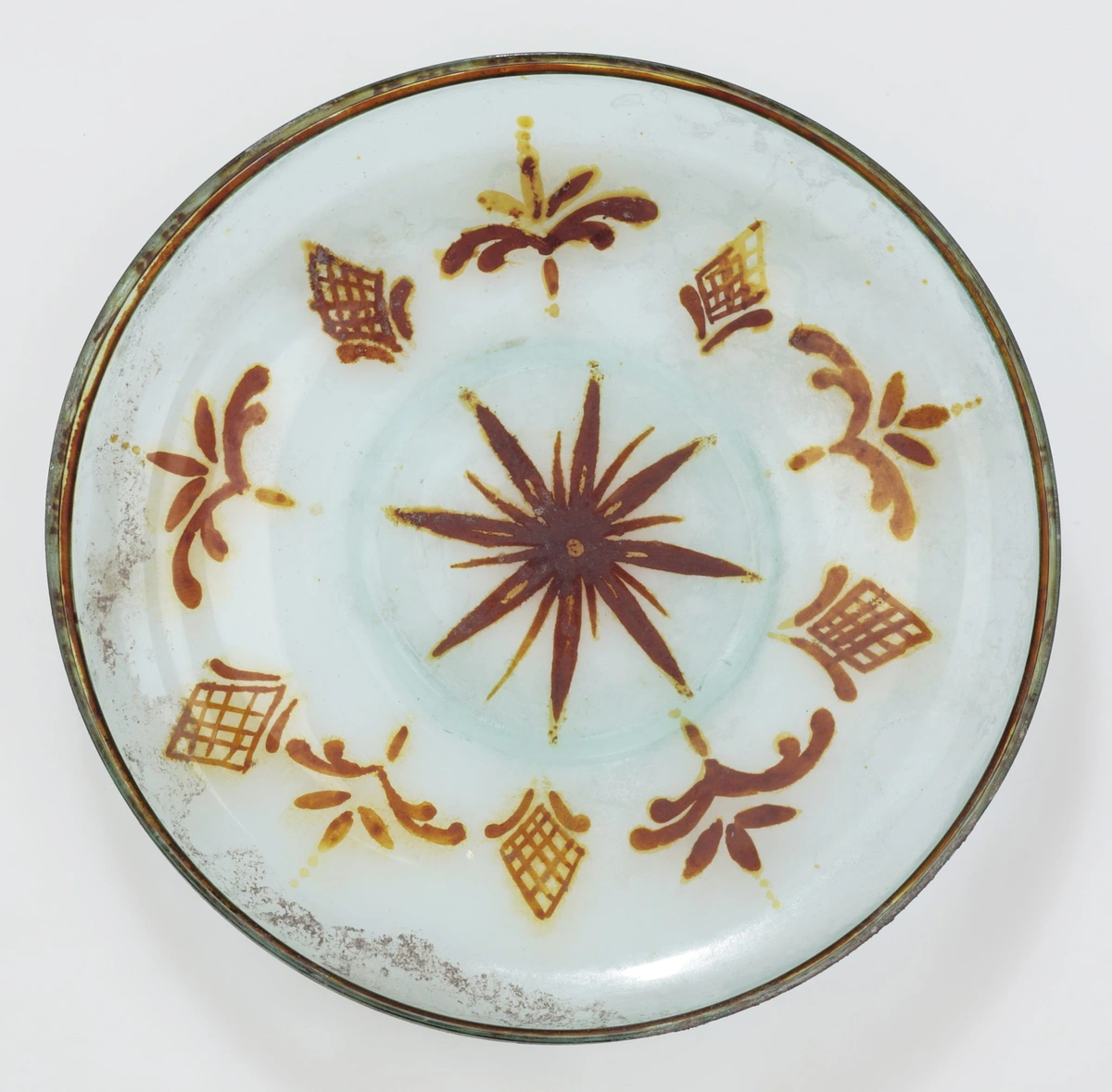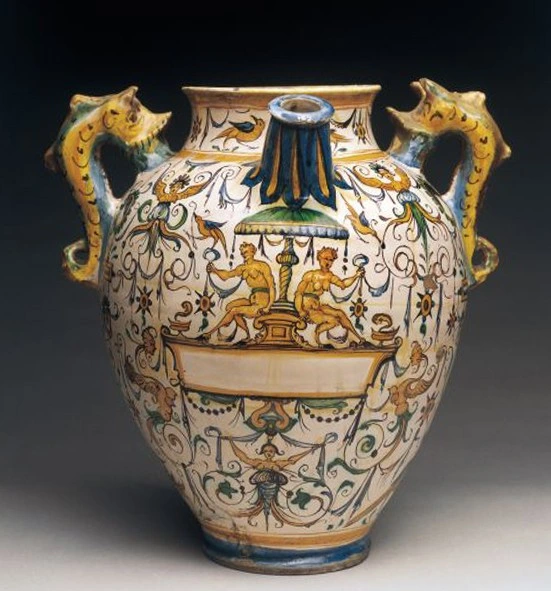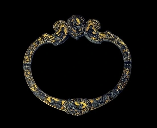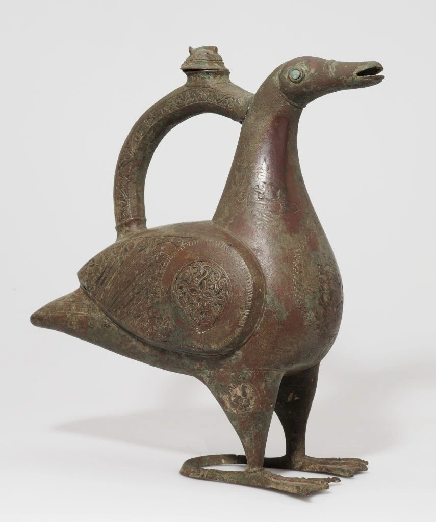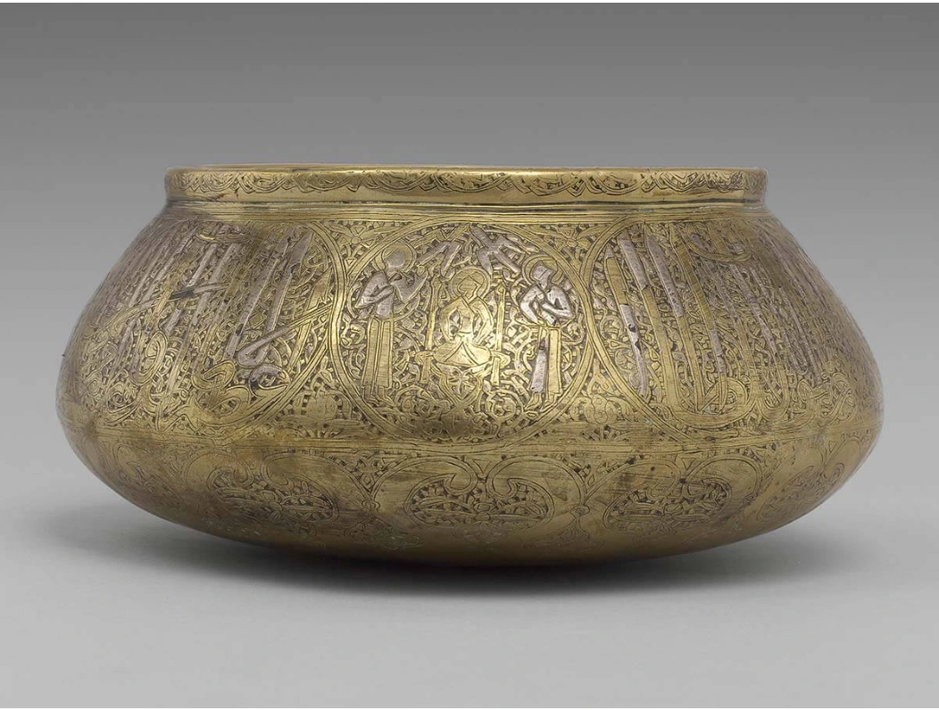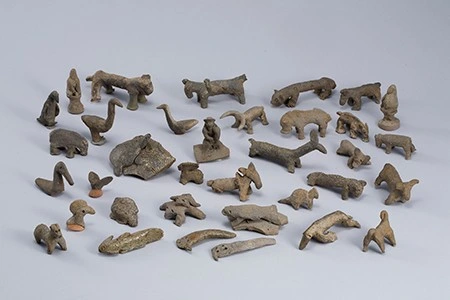 A painted ceramic vessel in the Codex Style. It depicts a wayob’, the companion spirit of a Mayan ruler. This one is a toad which is wearing a jade bead necklace (there are two different animals, not visible, located around the back of the cup). There is also writing in Mayan glyphs, some of which declare the vessels purpose: drinking cacao.