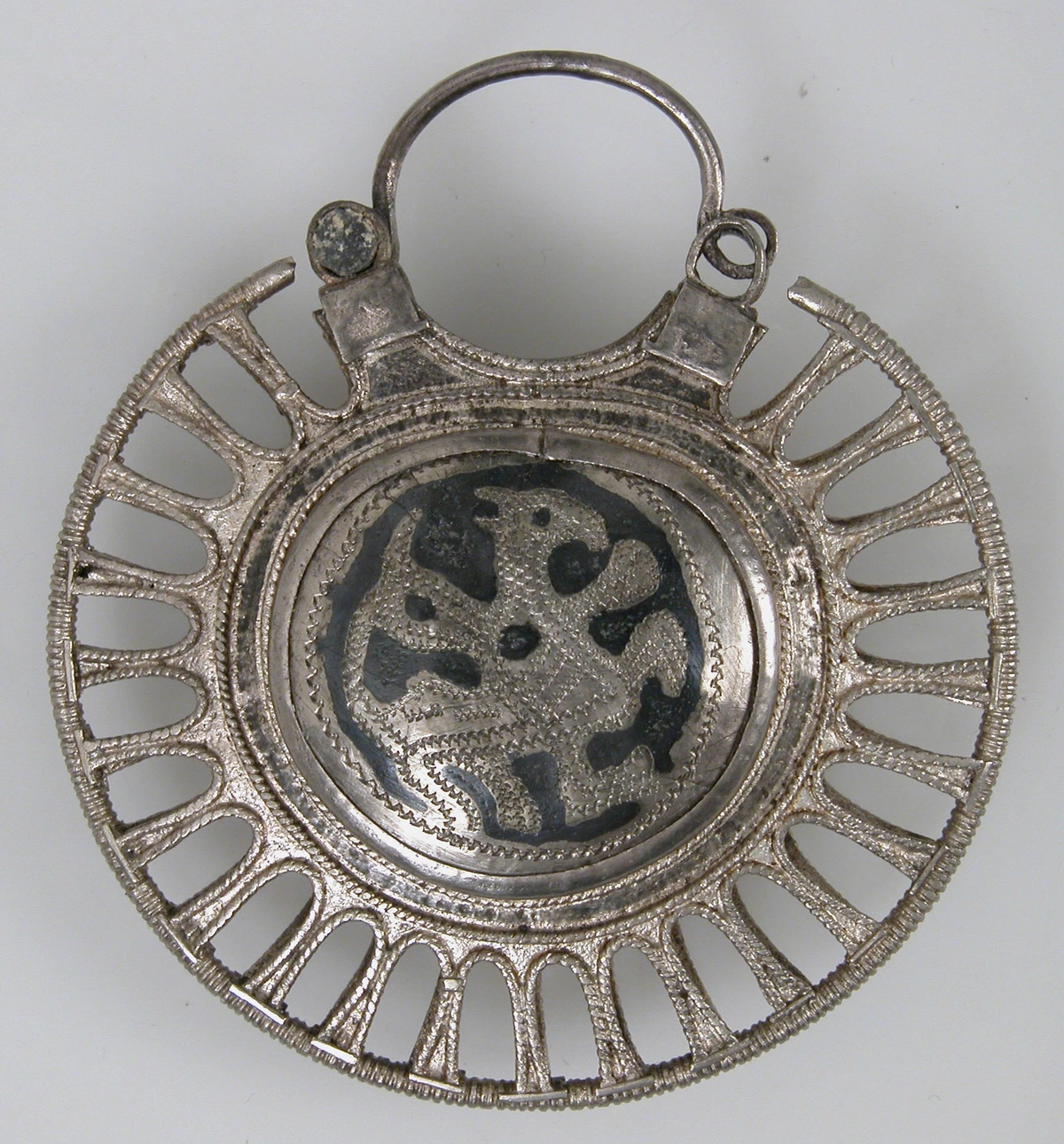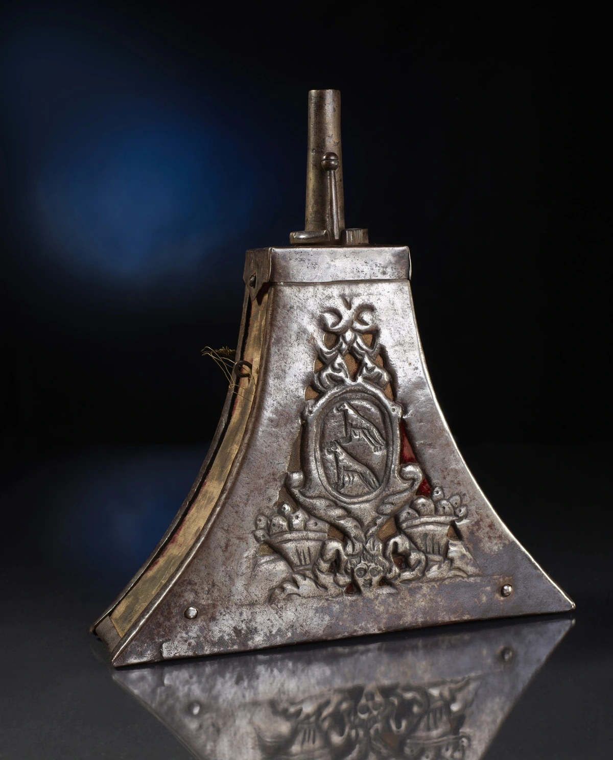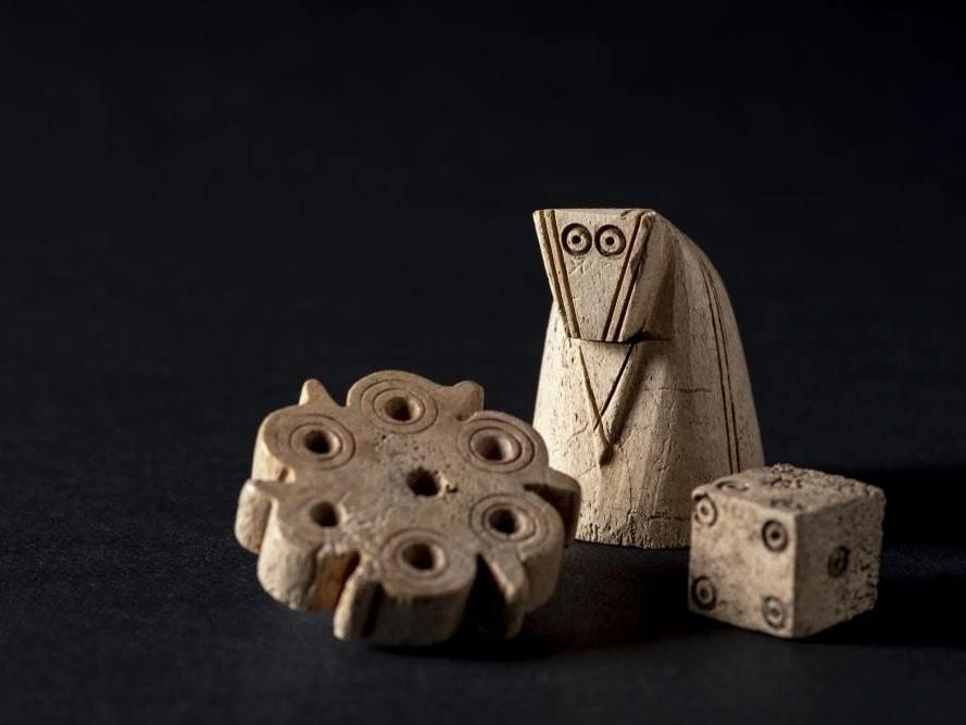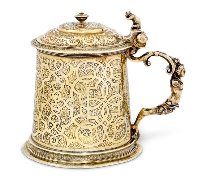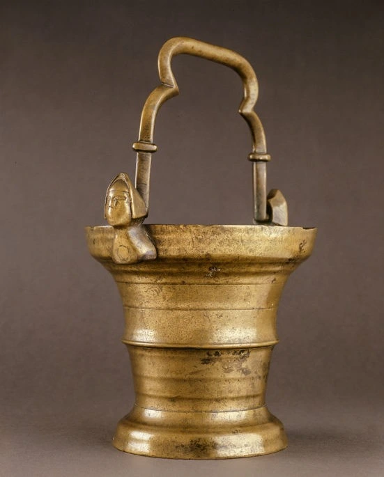 A painted ceramic vessel in the Codex Style. It depicts a wayob’, the companion spirit of a Mayan ruler. This one is a toad which is wearing a jade bead necklace (there are two different animals, not visible, located around the back of the cup). There is also writing in Mayan glyphs, some of which declare the vessels purpose: drinking cacao.
