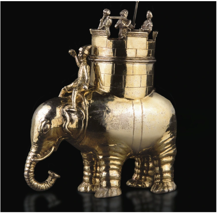 War elephant figurine, gilded silver, Germany, ~1600 AD